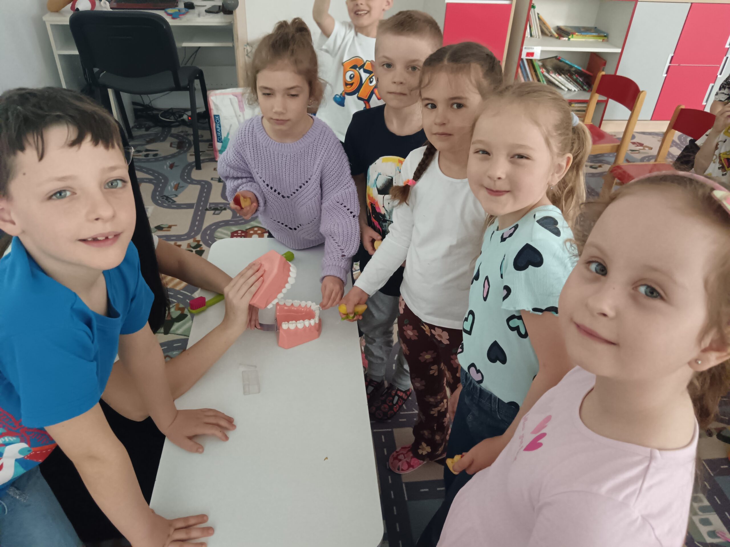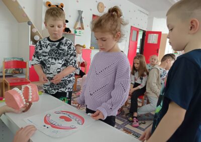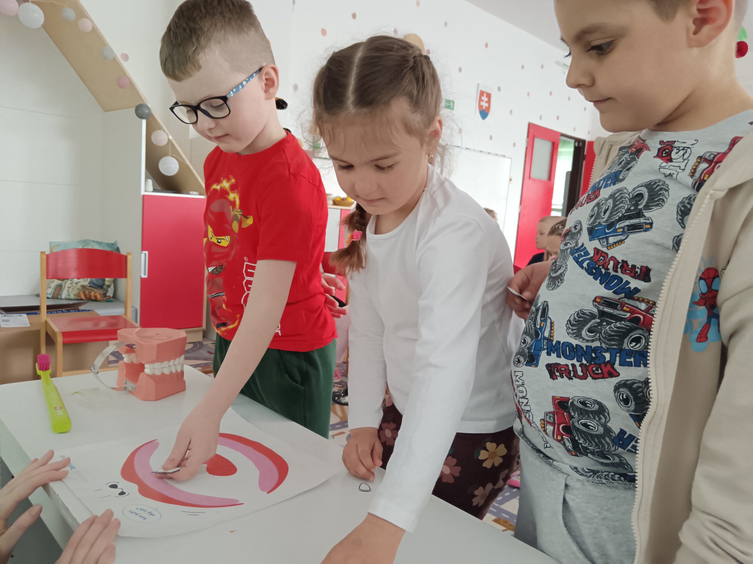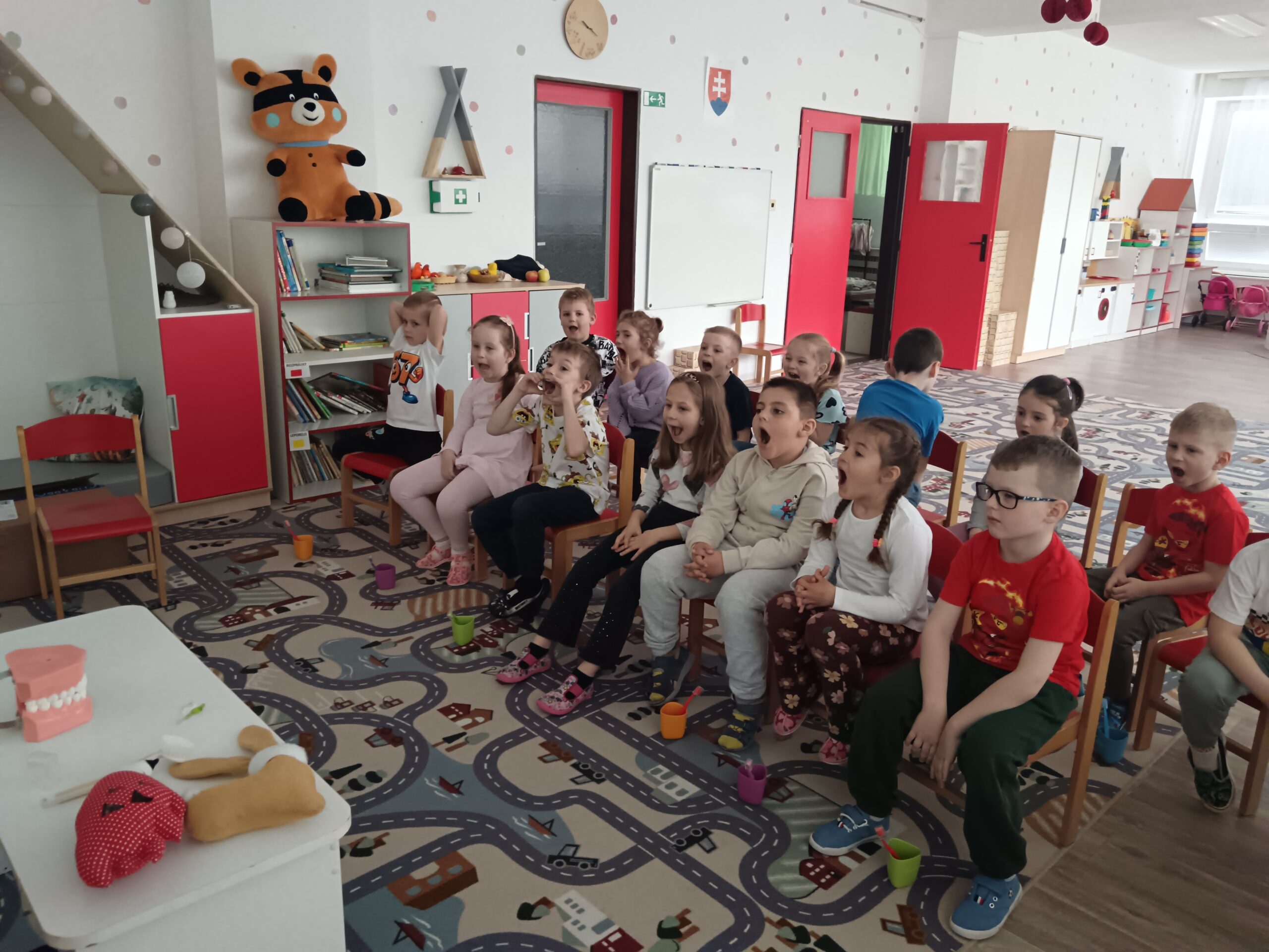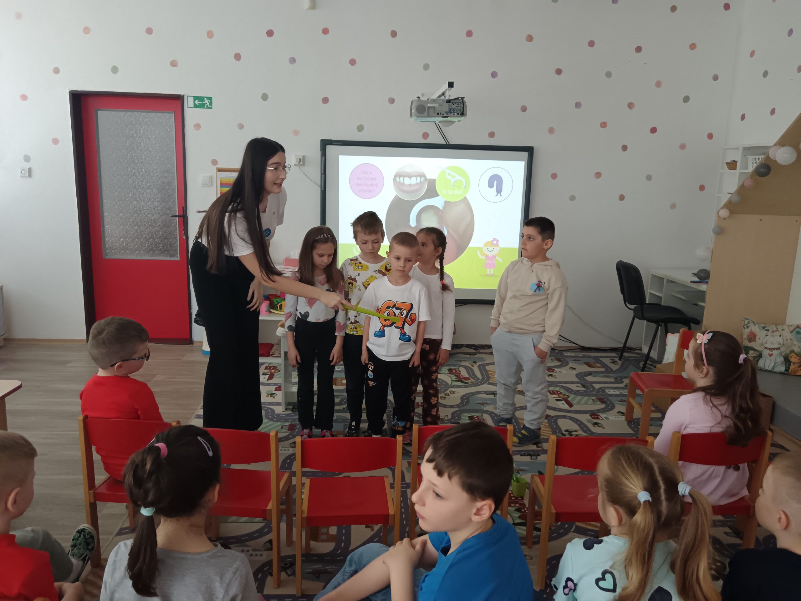 Dňa 16.4.2026 nás už druhýkrát navštívila milá študentka z Dentálnej hygieny. Pre deti si pripravila zaujímavé a poučné aktivity o starostlivosti o zúbky. Deti sa hravou formou dozvedeli, ako správne čistiť zuby, čo zúbkom prospieva a čo im škodí. Prezreli si aj zubárske pomôcky a model zuba.