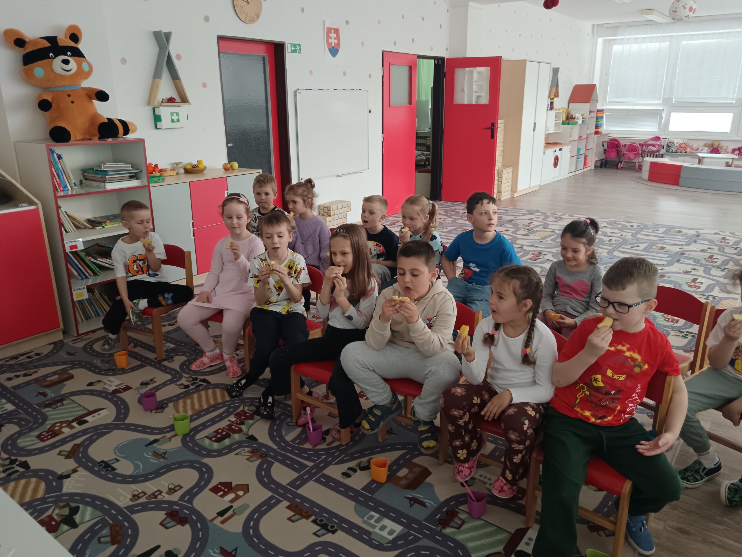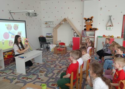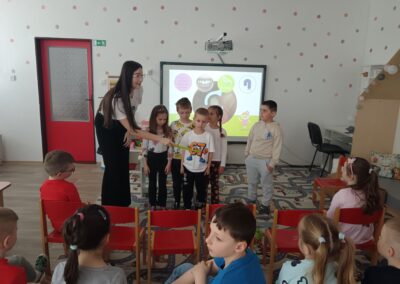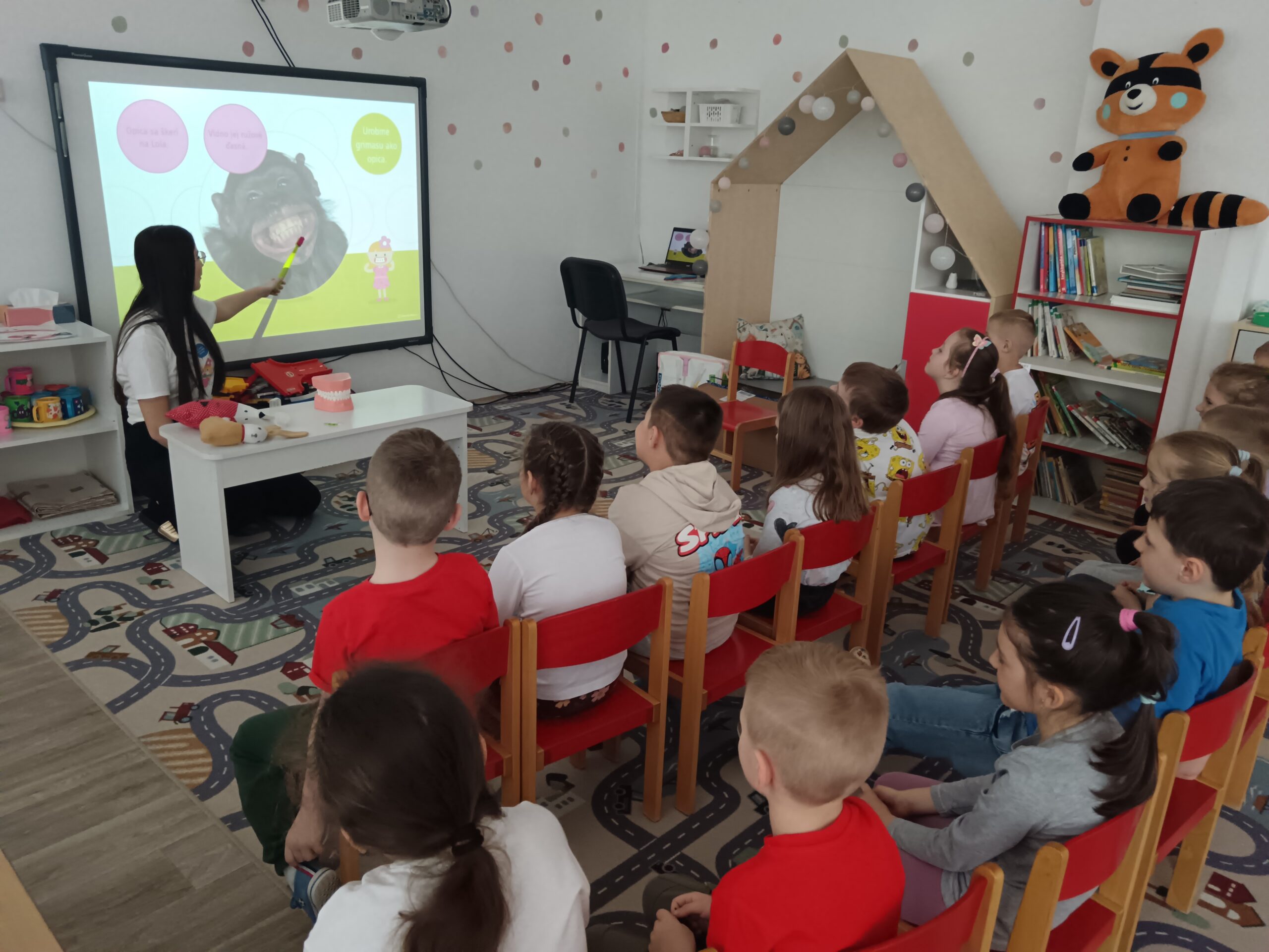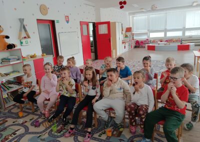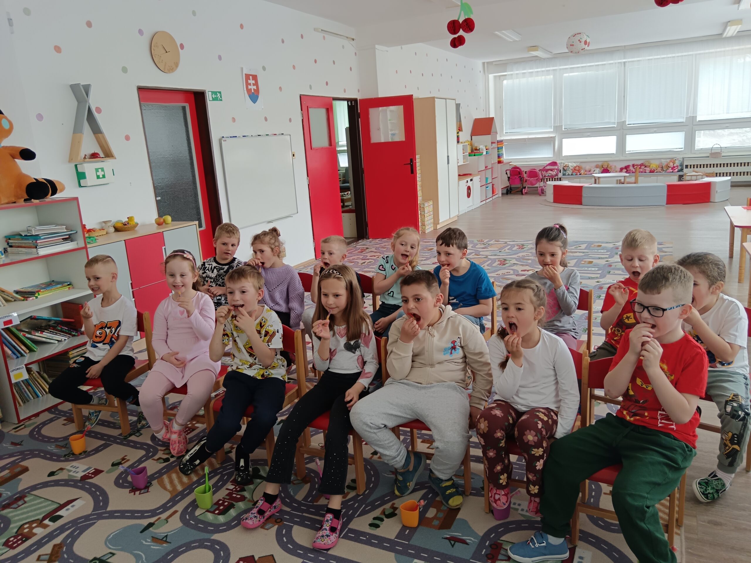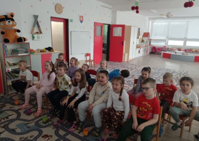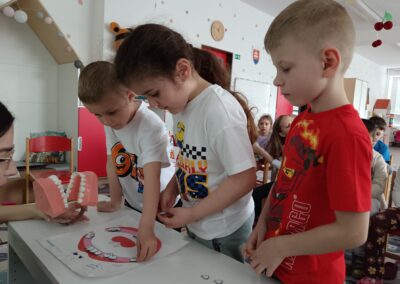 Dňa 16.4.2026 nás už druhýkrát navštívila milá študentka z Dentálnej hygieny. Pre deti si pripravila zaujímavé a poučné aktivity o starostlivosti o zúbky. Deti sa hravou formou dozvedeli, ako správne čistiť zuby, čo zúbkom prospieva a čo im škodí. Prezreli si aj zubárske pomôcky a model zuba.